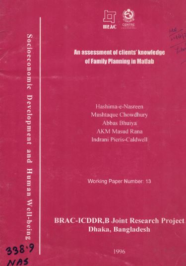 An Assessment of Clients Knowledge of Family Planning in Matlab